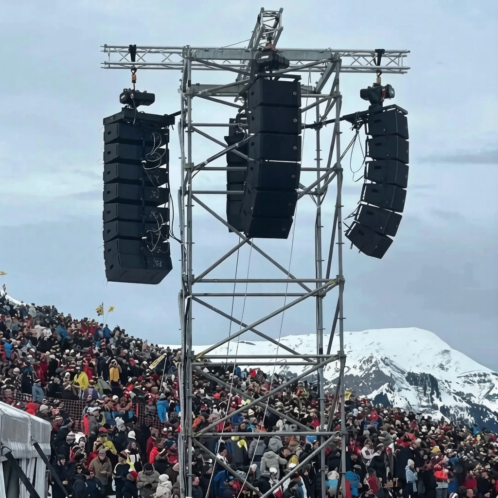 高海拔、-15°C 至 - 20°C 的低温、最高 150km/h 的狂风,三大考验摆在面前。赛道绵长、观众分布分散、环境噪音复杂,如何在这样的冰雪赛场中,保障广播通知清晰可闻、赛事氛围均匀覆盖?这不仅是一次常规扩声任务,更是对产品综合性能的严苛验证。