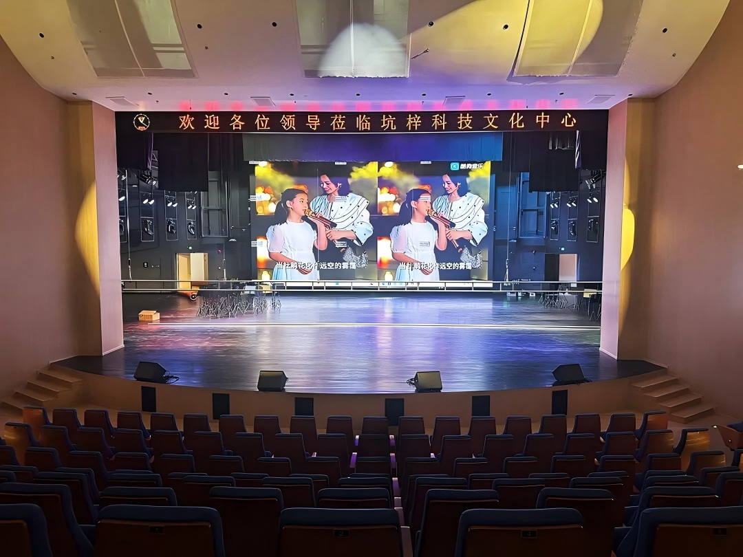 盛开剧场是坑梓科技文化中心文化馆新落成的专业艺术展演空间,以约600平方米的主舞台和500席阶梯式观众厅为核心,配备扩声、灯光、视频、机械等全系列专业设施,融合现代舞台科技与专业声场设计。作为坪山公共文化服务的重要载体,盛开剧场主要承办中小型音乐会、话剧、文艺演出、学术讲座等多类型活动,凭借精准高效的专业音响系统,将多元化的艺术表演活动呈现为沉浸式的听觉盛宴。